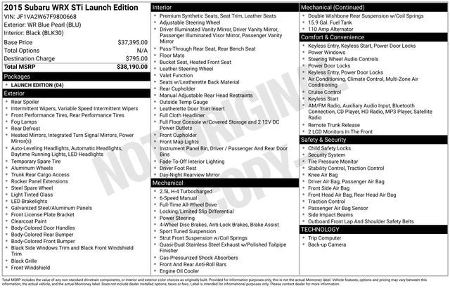 2015 Subaru Impreza WRX STi Launch Edition