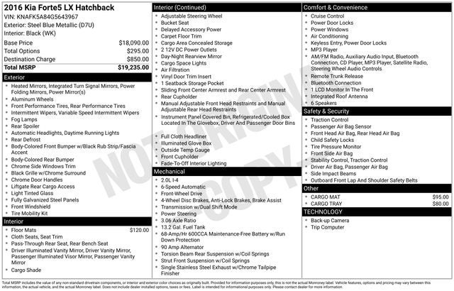 ONE OWNER, INCLUDES PREPAID MAINTENANCE. Steel Blue Metallic 2016 Kia Forte5 LX FWD 6-Speed Automatic 2.0L I4 DOHC Dual CVVT