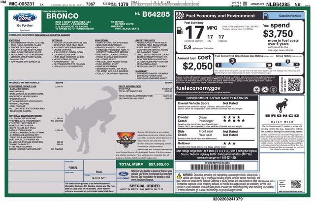 - Vehicle Name: Ford Bronco