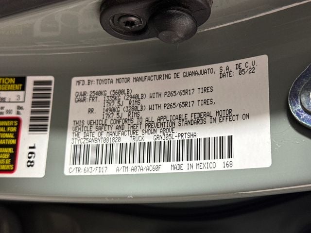 - Vehicle Name: Toyota Tacoma 4WD